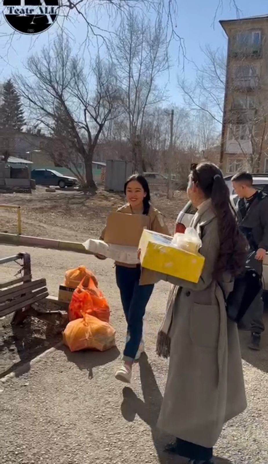 Театр өнер мектебінің құрамында біздің колледж студенттері Ержанов Серікжан (21-ББ-2 тобы), Төлеубекова Айдана (20-ШТ-2 тобы), Тұрарбек Үкіләй (21-ББ-2 тобы), Керімкұл Алуа (20-ББТ-1 тобы), Рахым Әсем (20-ББ-1 тобы) көпбалалы отбасыларға тұрмысқа қажетті азық-түлік таратты.