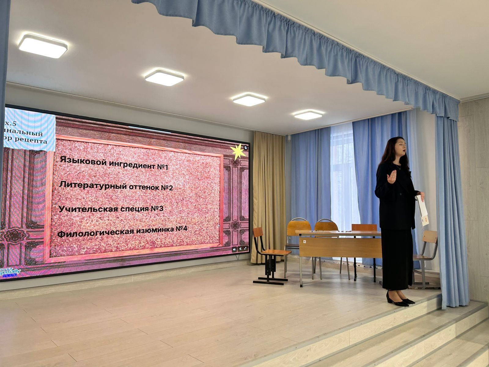 Іс-шара Шығыс Қазақстан облысы Білім басқармасының Өскемен қаласындағы «№34 мектеп-лицейі» КММ базасында ұйымдастырылды. Мақсаты – білім алушылардың саналы кәсіби бағыт-бағдарын қалыптастыруға жағдай жасау, оларды нақты еңбек үдерісіне жақын ортаға енгізу және «Орыс тілі мен әдебиеті мұғалімі» мамандығының ерекшеліктерімен таныстыру.