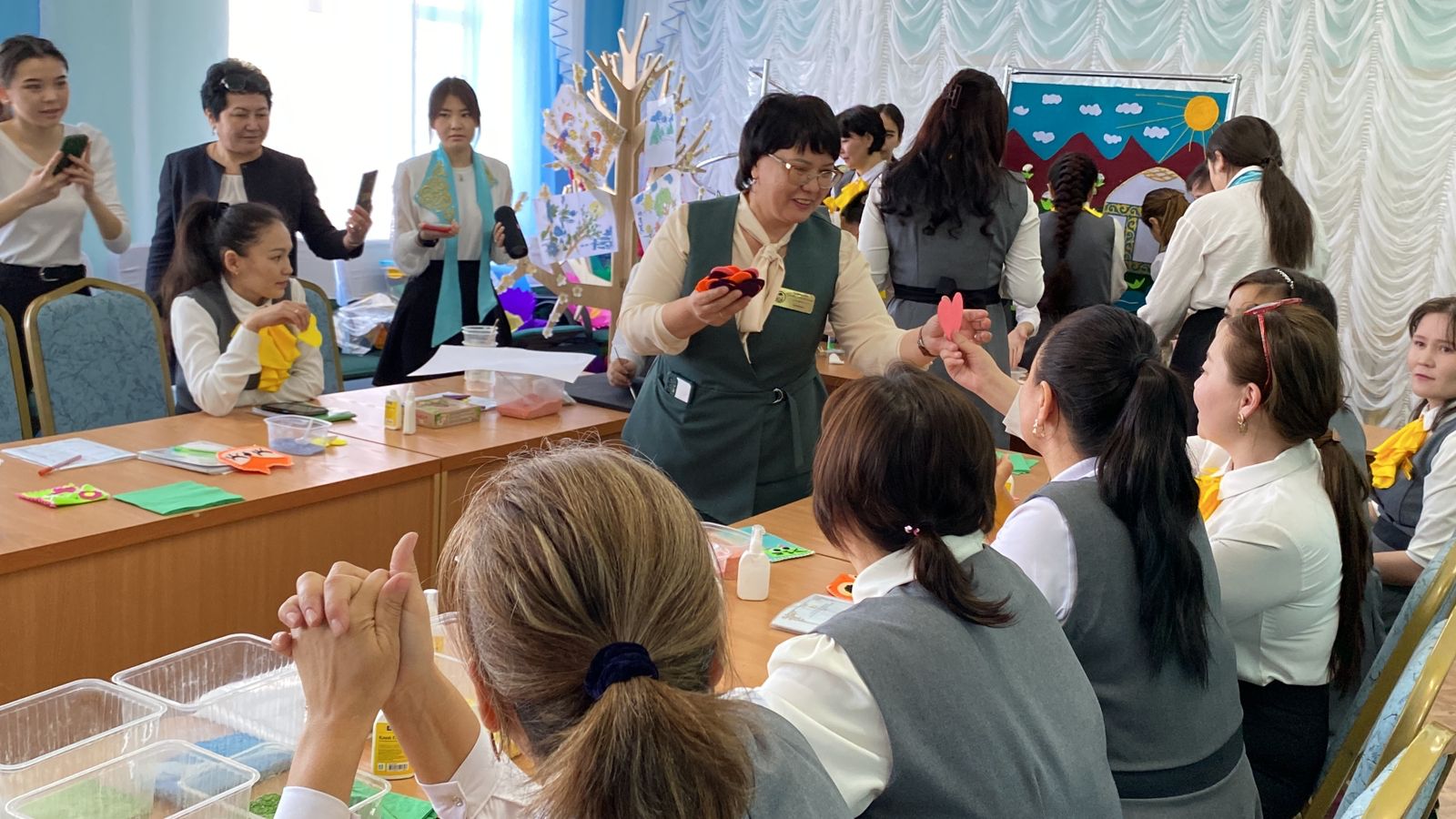 Бағдарламаның екінші бөлімі бойынша балабақша педагогтері үшін тәжірибе тарату платформасында «Ғажайып роботтар әлемінде» іскерлік ойыны (Ахметкалиева Ғ. М., Рахимова А.С., 4 курс білім алушылары); «Лепбук-интерактивті құрал» (Тюлекпаева С.Е., Кудайбергенова Г.К.); «Дәстүрден тыс сабақтарда ұлттық өнер тағылымдарын қолдану» (Кусаинова А.М. және 3 курс білім алушылары) біздің педагогтер балабақша педагогтері үшін әдістемелік портфель ретінде инновациялық идеялармен бөлісті. шеберлік сағаттарын ұйымдастырып, балабақша педагогтеріне әдістемелік қоржын ретінде жаңашыл идеяларымен бөлісті. Кері байланыс барысында педагог- тәрбишілер үлкен әсер алғандарын және жаңашыл ойлармен қаруланғандарын атап өтті.