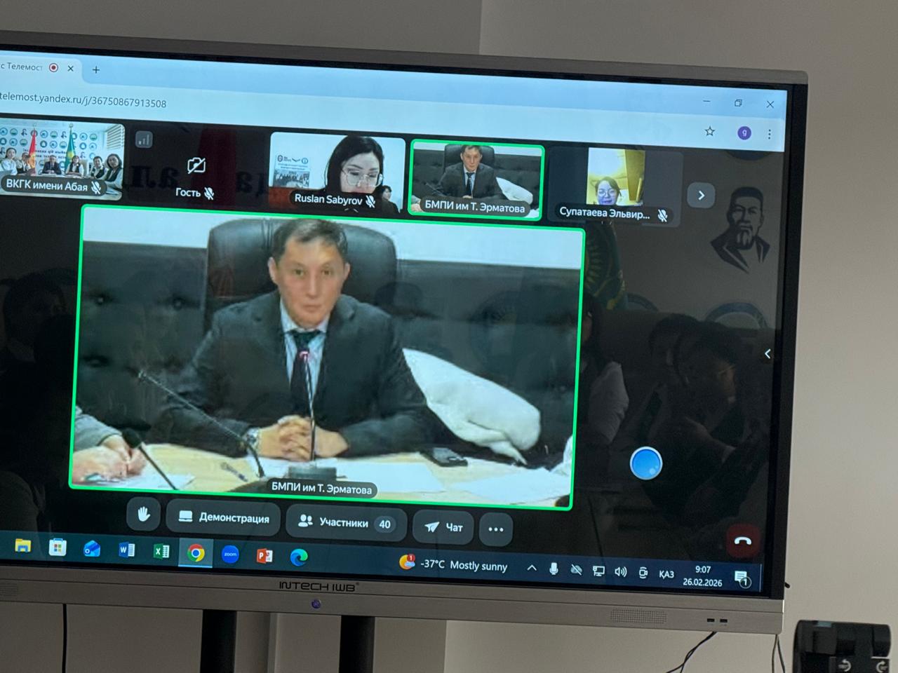 2026 жылдың 26 ақпаны күні Қырығызстан Республикасы, Бішкек қаласындағы Таштан Эрматов атындағы Бішкек музыкалық-педагогикалық институтының 60 жылдық мерейтойына арналған іс-шаралар аясында оқу орнымыздың оқытушылары мен білім алушылары онлайн форматта өткен «Оқыту мен тәрбиелеудегі инновациялық тәсілдер» атты Халықаралық студенттік ғылыми-тәжірибелік конференциясына қатысты.