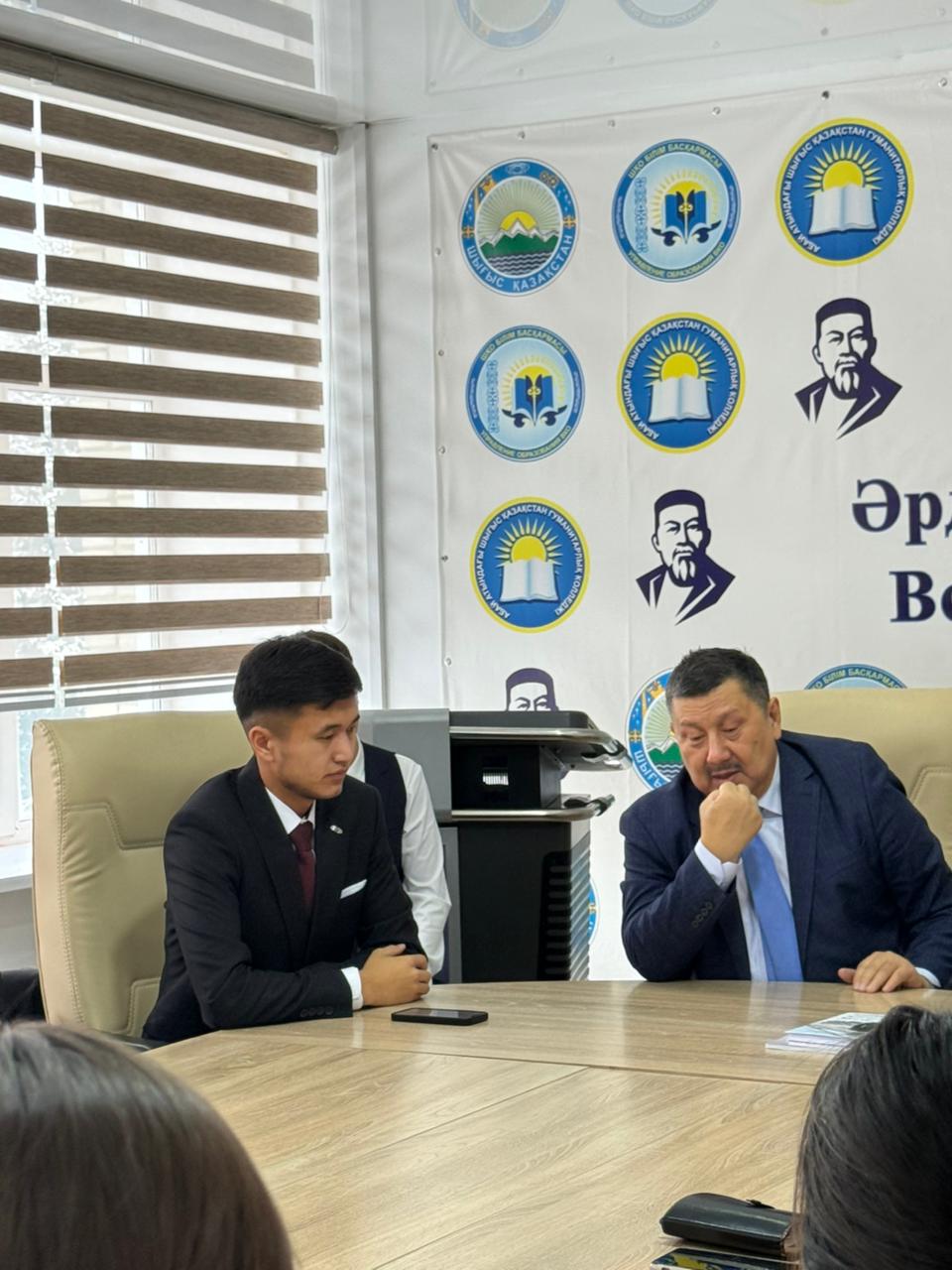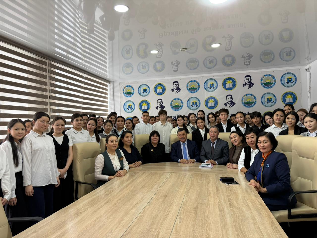 2025 жылдың 18 желтоқсаны күні оқу орнымыздың директоры, т.ғ.к. Фархад Сақанұлының бастамасымен Қазақстанның еңбек сіңірген қайраткері, мемлекет және қоғам қайраткері, ҚР Парламенті Мәжілісінің I шақырылым депутаты, қазақ тілінде тұңғыш жазылған «Халықтың көші-қоны туралы» заңның авторы, 1997 жылғы «Жыл адамы», «Құрмет» ордені мен Моңғолияның жоғары марапаты — «Шыңғысхан» медалінің иегері, белгілі қаламгер, ақын, сазгер, журналист, заңгер Әкім Ысқақпен тағылымды кездесу өтті.