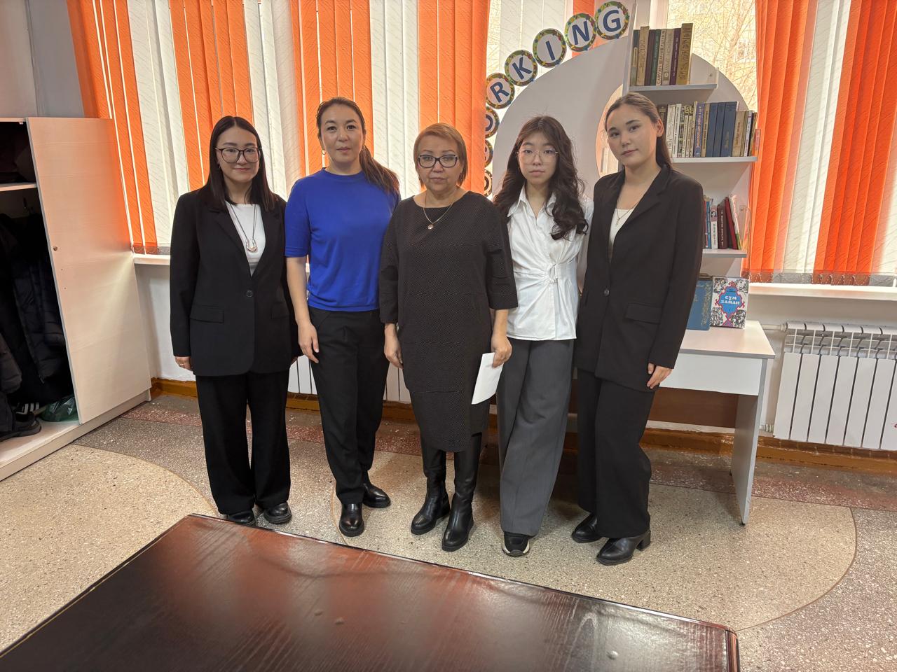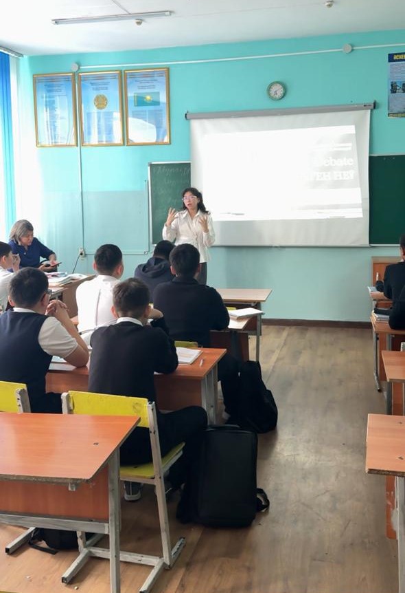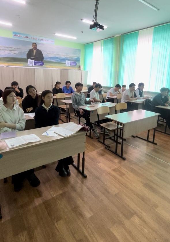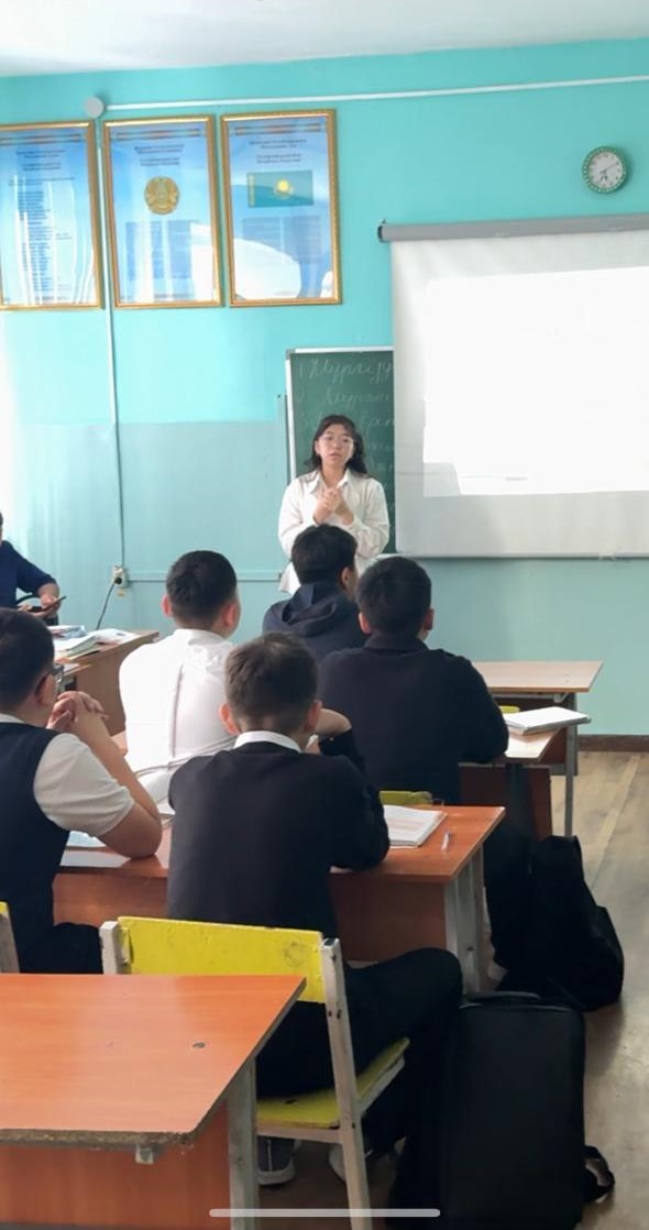 2025 жылғы 12 қараша күні «Қазақ тілі мен әдебиеті» пән бірлестігінің апталығы аясында оқытушы А.М. Қайкенованың ұйымдастыруымен оқу орнымыздың 4-курс студенттері Шәріпханова Ақбота, Ұланқадырова Аружан және Еркін Әмина ШҚО білім басқармасы Өскемен қаласы бойынша білім бөлімінің «№35 орта мектебі» КММ 8–9-сынып оқушыларына арналған кәсіби бағдар беру жұмысы және шеберлік сағатын өткізді.