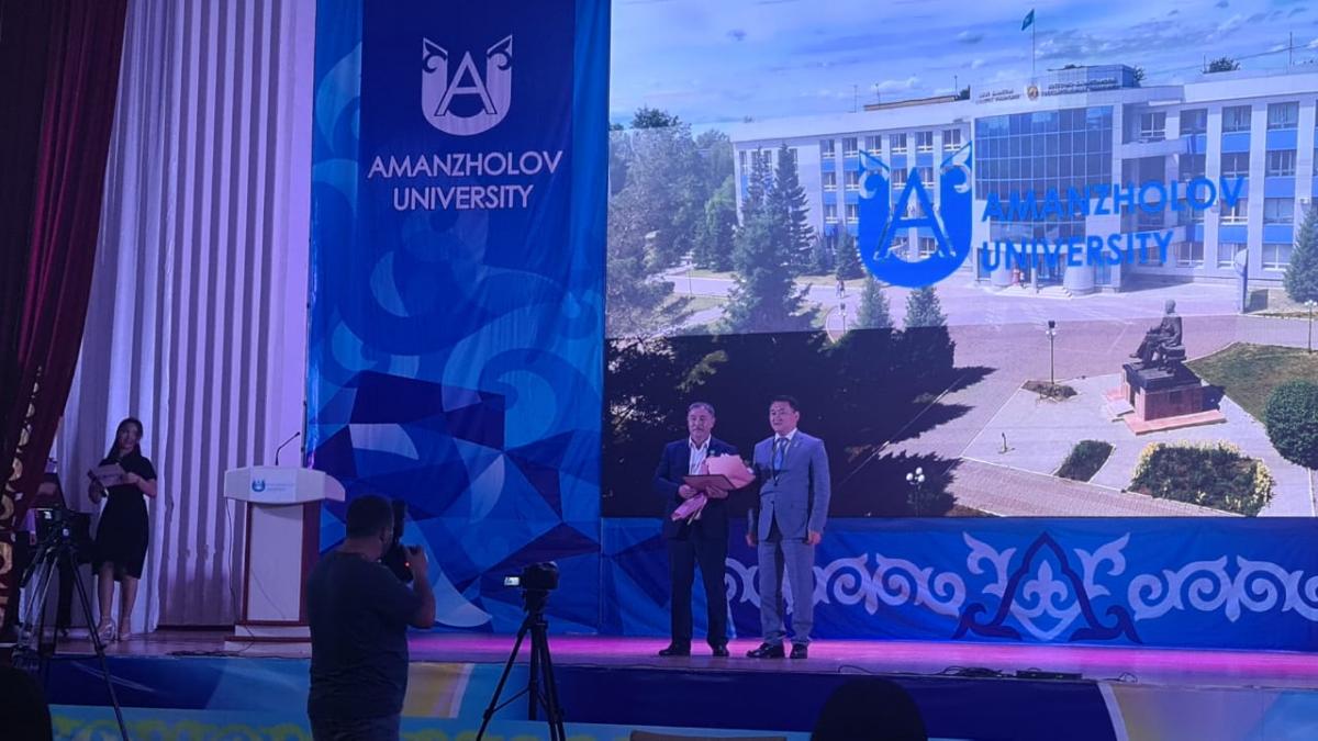 Сонымен қатар Абайды ұлықтап, Абайға мүсін орнатқан Абай атындағы Шығыс Қазақстан гуманитарлық колледжі мен университет арасындағы ынтымақтастықты айта келе, колледж директоры Фархад Сақанұлын Абай төсбелгісімен марапаттады.