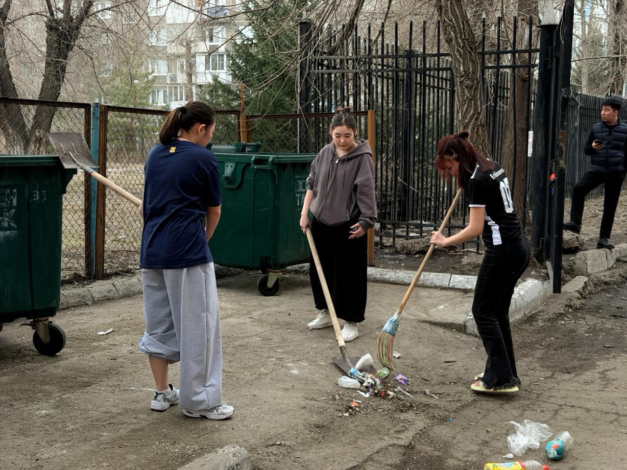 Сонымен қатар, 4 сәуір күні колледждің Студенттер үйінің маңында да тазалық акциясы ұйымдастырылып, аумақты абаттандыру, тазалау жұмыстары жүргізілді. Мұндай шаралар жастардың экологиялық мәдениетін қалыптастырып, табиғатқа деген жауапкершілігін арттыруға зор ықпал етеді.