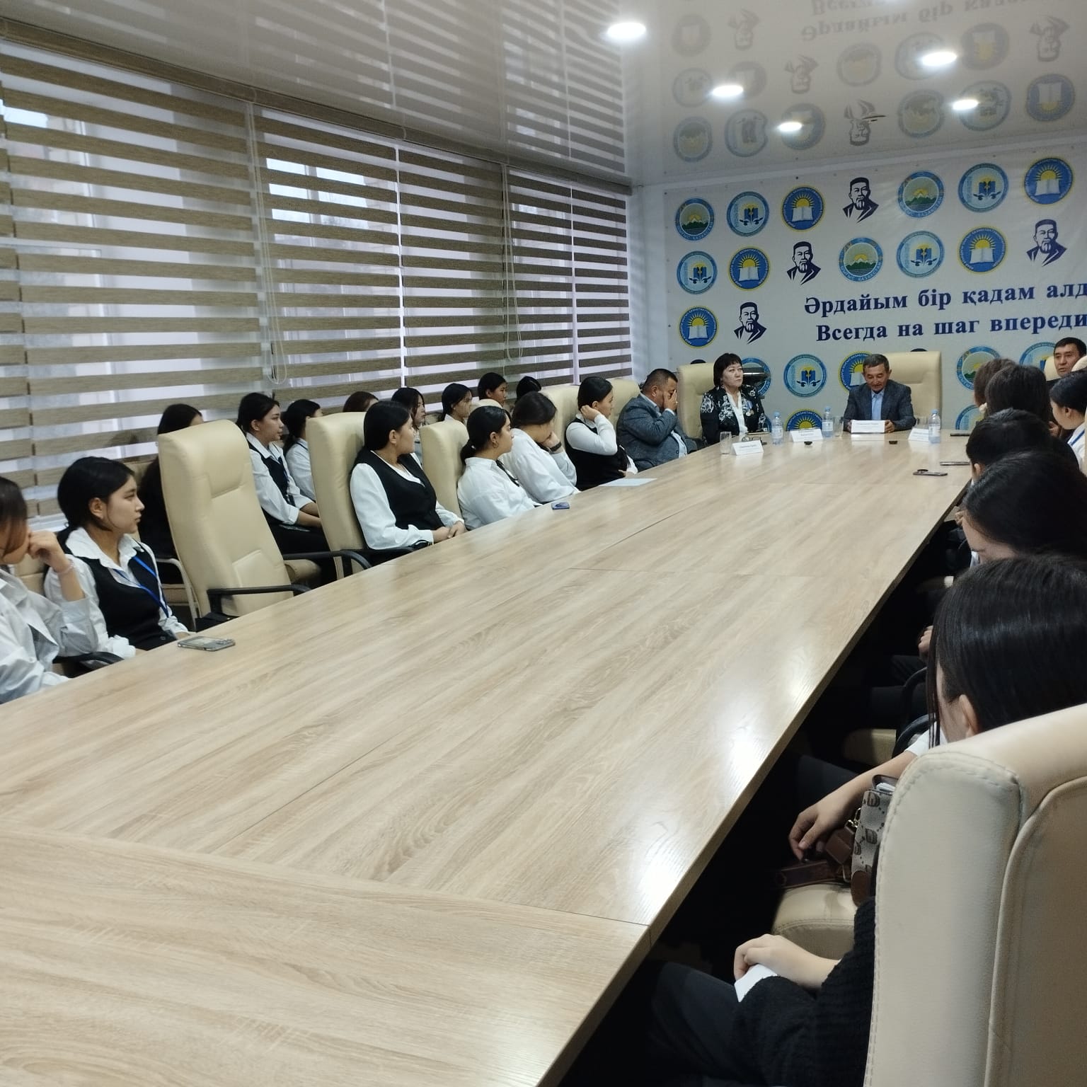 Кездесу соңы қонақтардың студенттерге сый-сыйапаттары ұсынылды.