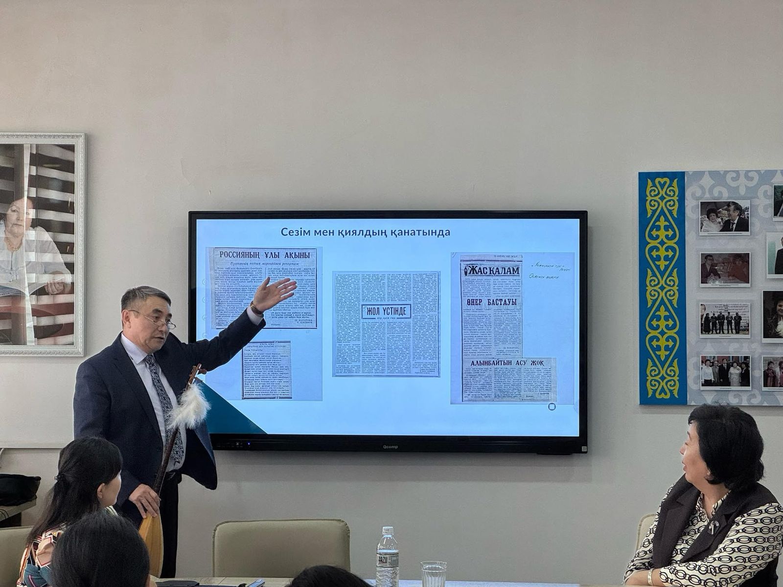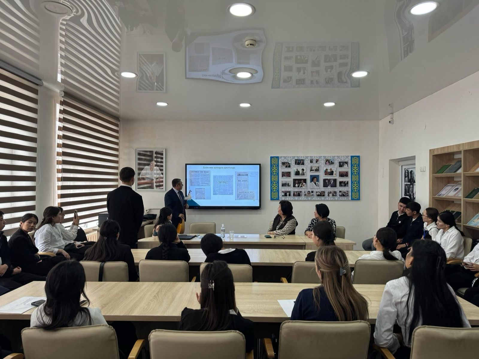 Сакен Токанович высказал свое научное видение литературы, языка, провел обзор исследовательских работ. Также подробно рассказал об университете имени С.Аманжолов и провел профориентационную работу для будущих специалистов. Со стороны студентов к ученому-учителю были заданы различные вопросы и обменялись мнениями.