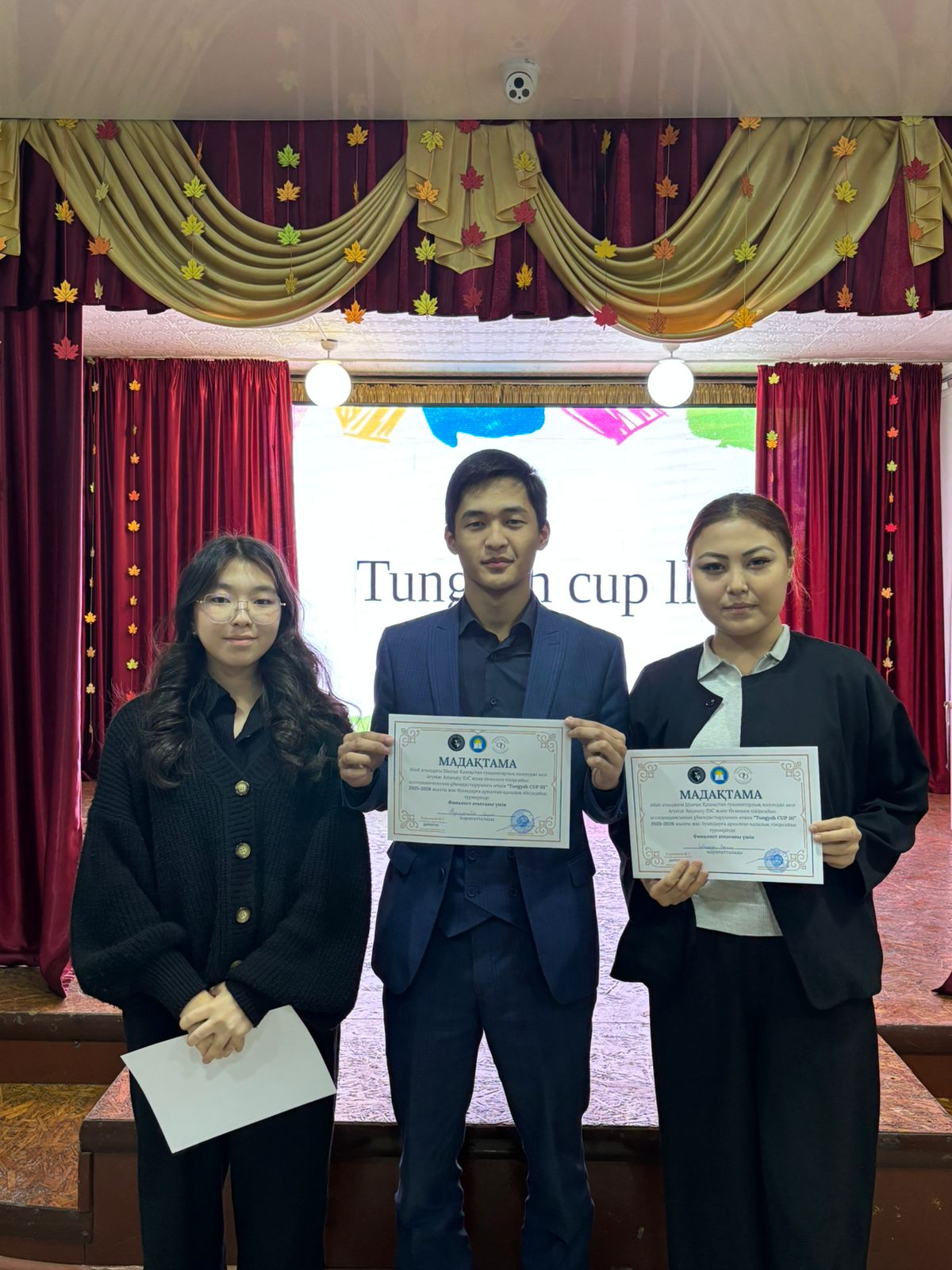 05 октября 2025 года в Восточно-Казахстанском гуманитарном колледже имени Абая состоялся городской турнир “Tungysh CUP III” для молодого поколения 2025–2026 учебного года, организованный Дебатной ассоциацией Усть-Каменогорска и Интеллектуальным дебатным клубом ВКГК им Абая “Арыстар Аманаты”. Турнир проходил в формате БПФ (Британский парламентский формат) на казахском и русском языках. Главный судья соревнований: Шарипханова Акбота. В нем участвовали студенты и преподаватели Высшего политехнического коллджа, Высшего медицинского колледжа, колледжей КАСУ, ВКУ им С.Аманжолова, ВКТУ им. Д.Серикбаева, а также высших учебных заведений города (КАСУ, ВКУ им С.Аманжолова, ВКТУ им. Д.Серикбаева) и Назарбаев интеллектуальной школы.