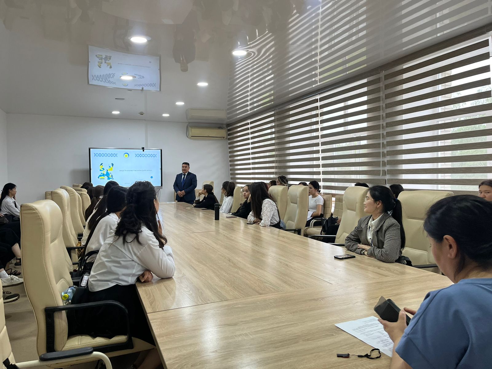 20 мая 2024 года была проведена встреча с Кыстаубаевым Н.Т., сотрудником филиала АО «Государственный фонд социального страхования» по Восточно-Казахстанской области. Лектор рассказал о системе обязательного социального страхования, а именно механизмы уплаты социальных отчсилений, осуществление социальных выплат и многое другое.