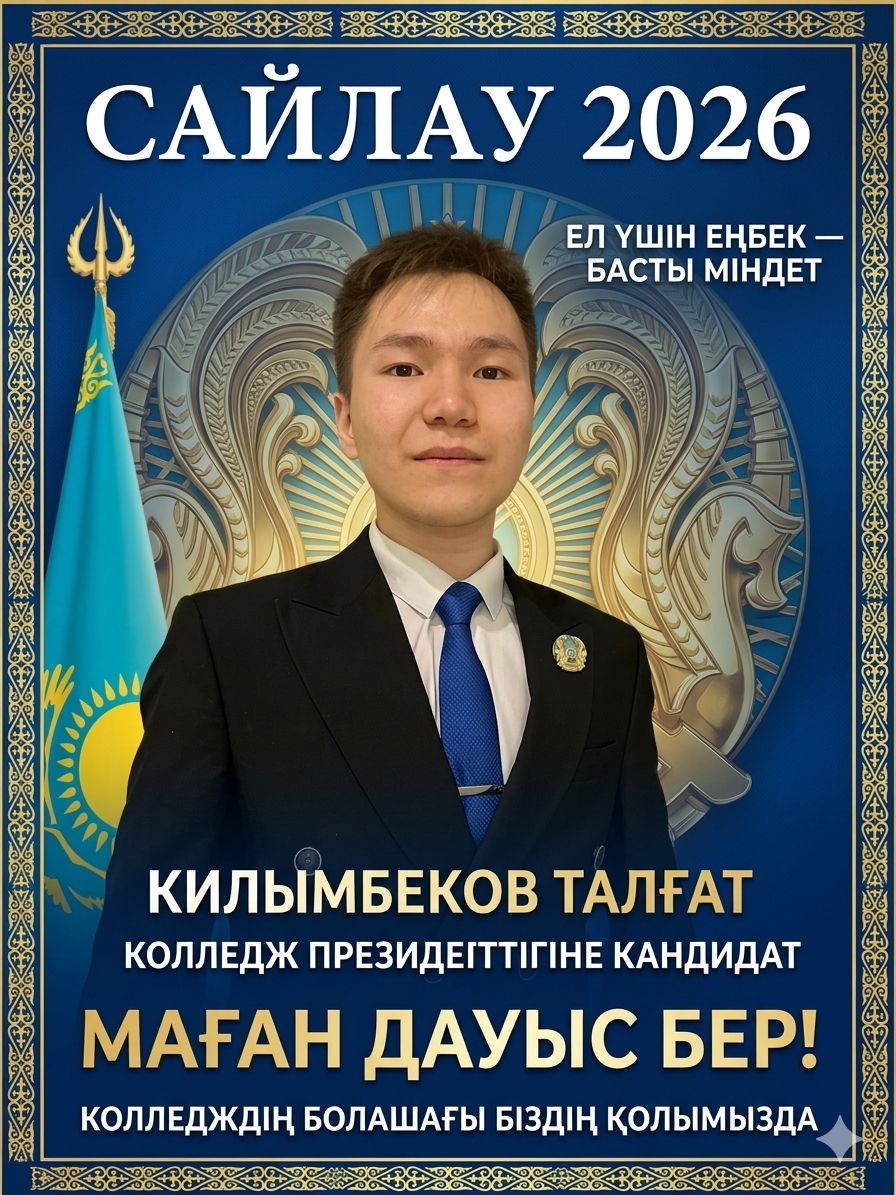 Кандидатами выступили три студента третьего курса: Килымбеков Талғат, Сембаева Нұрзат и Оразғали Адал. Кандидаты начали свою предвыборную кампанию за несколько дней до голосования. Каждый из них показал портфолио, предвыборную программу и самопрезентацию.