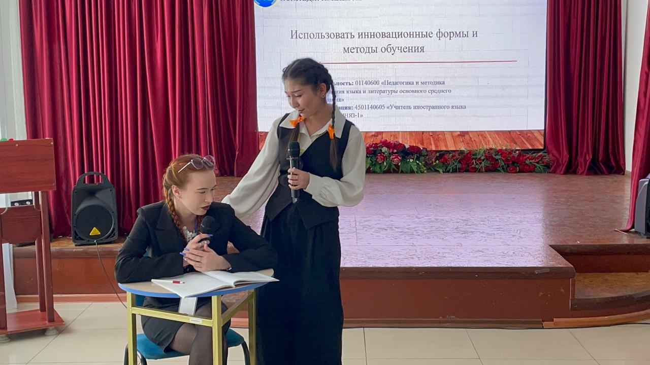 14.02.2025 жылы Абай атындағы Шығыс Қазақстан гуманитарлық колледжінде 01140600 «Негізгі орта білім берудегі тіл мен әдебиетті оқытудың педагогикасы мен әдістемесі» мамандығы, біліктілігі 4S01140605 «шет тілі мұғалімі» кәсіби практикалық қорытынды конференция өтті. Бұл конференцияның мақсаты шет тілін оқытудың әртүрлі әдістерін және олардың тиімді қолданылуын көрсету болды. Студенттер «№15 орта мектеп» КММ, «№24 орта мектеп» КММ және ШҚО мектептерінде тәжірибеден өтті. Практиканттар креативті тәсілді және әдістемелерді әртүрлі оқу жағдайларына бейімдеу қабілетін көрсетті. Конференция соңында қатысушылар нәтижелерді талқылады, тәжірибе қорытындыларын талдады, одан әрі кәсіби өсу үшін оң пікірлер мен ұсыныстар алды.