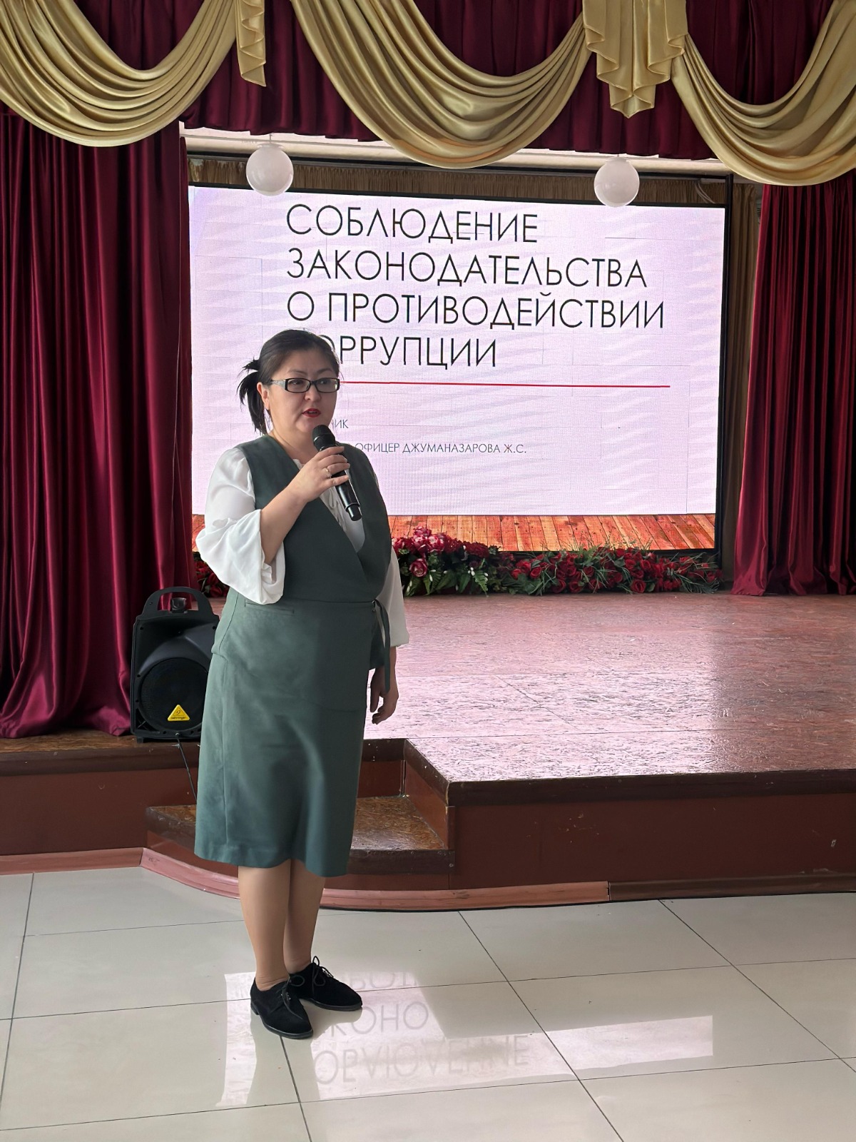 26 марта 2025 года комплаенс офицером колледжа, заместителем директора по ВР Джуманазаровой Ж.С. была проведена лекция на тему «Соблюдение законодательства о противодействии коррупции». Выступающая ознакомила педагогов с письмом временно исполняющего обязанности Председателя генерал-майора антикоррупционной службы господина У.Саркулова Заместителю Премьер-Министра – Руководителю Аппарата Правительства Республики Казахстан Койшыбаеву Г.Т., в котором проводился анализ коррупционных правонарушений в отношении государственных служащих и приравненных к ним лиц, а также физических и юридических лиц за последние 3 года.