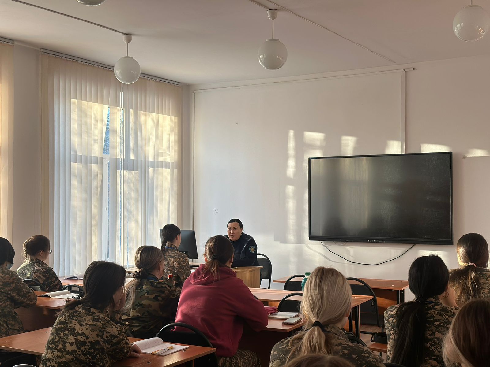 В период с 17 по 18 декабря 2024 года проводились профилактические беседы Старшим участковым инспектором полиции Ульбинского ОП майором полиции Жаксыбаевой Д.М. Студентам колледжа были разъяснены основные статьи Уголовного и Административного кодексов Республики Казахстан, последствия их нарушения.