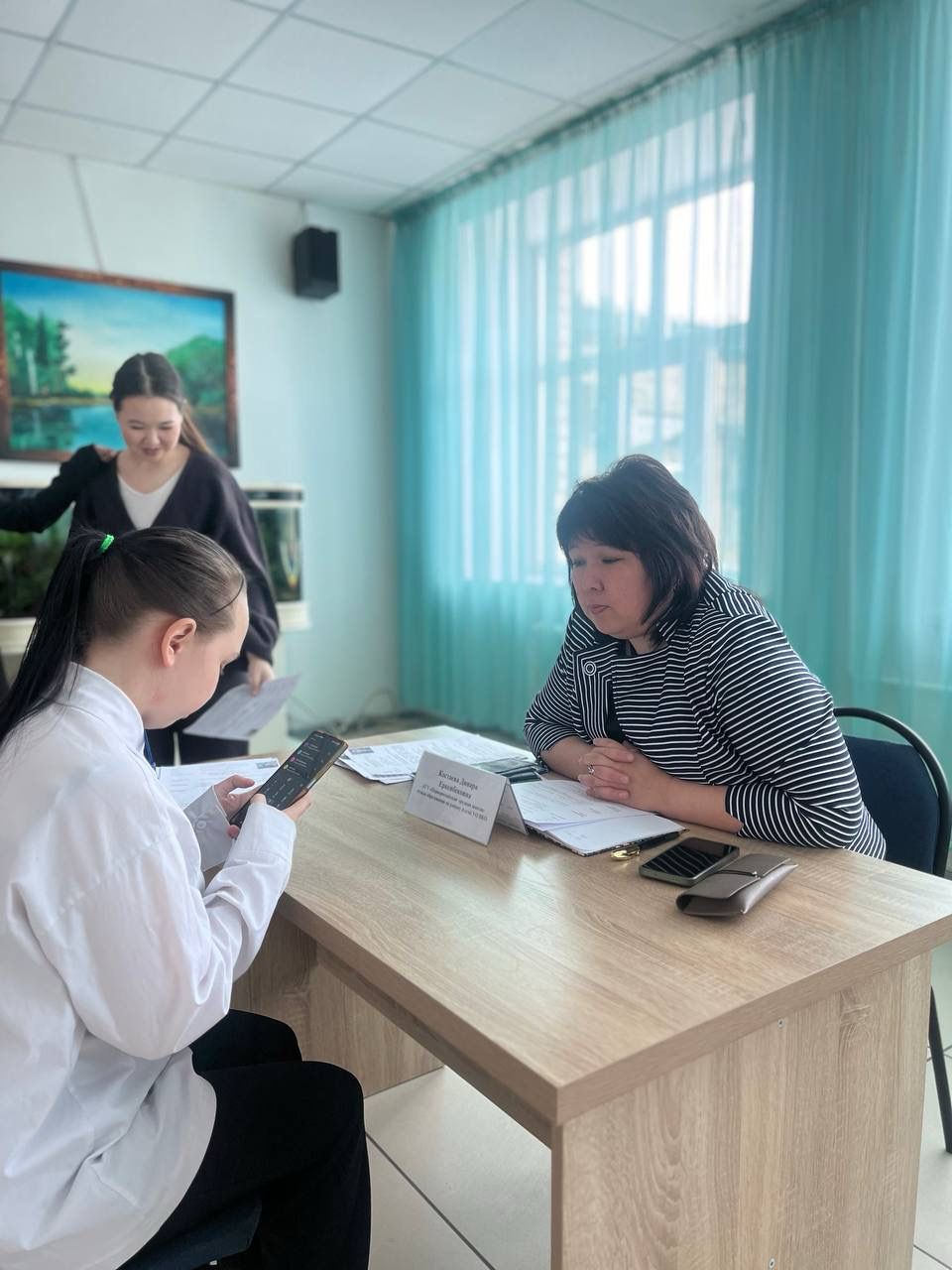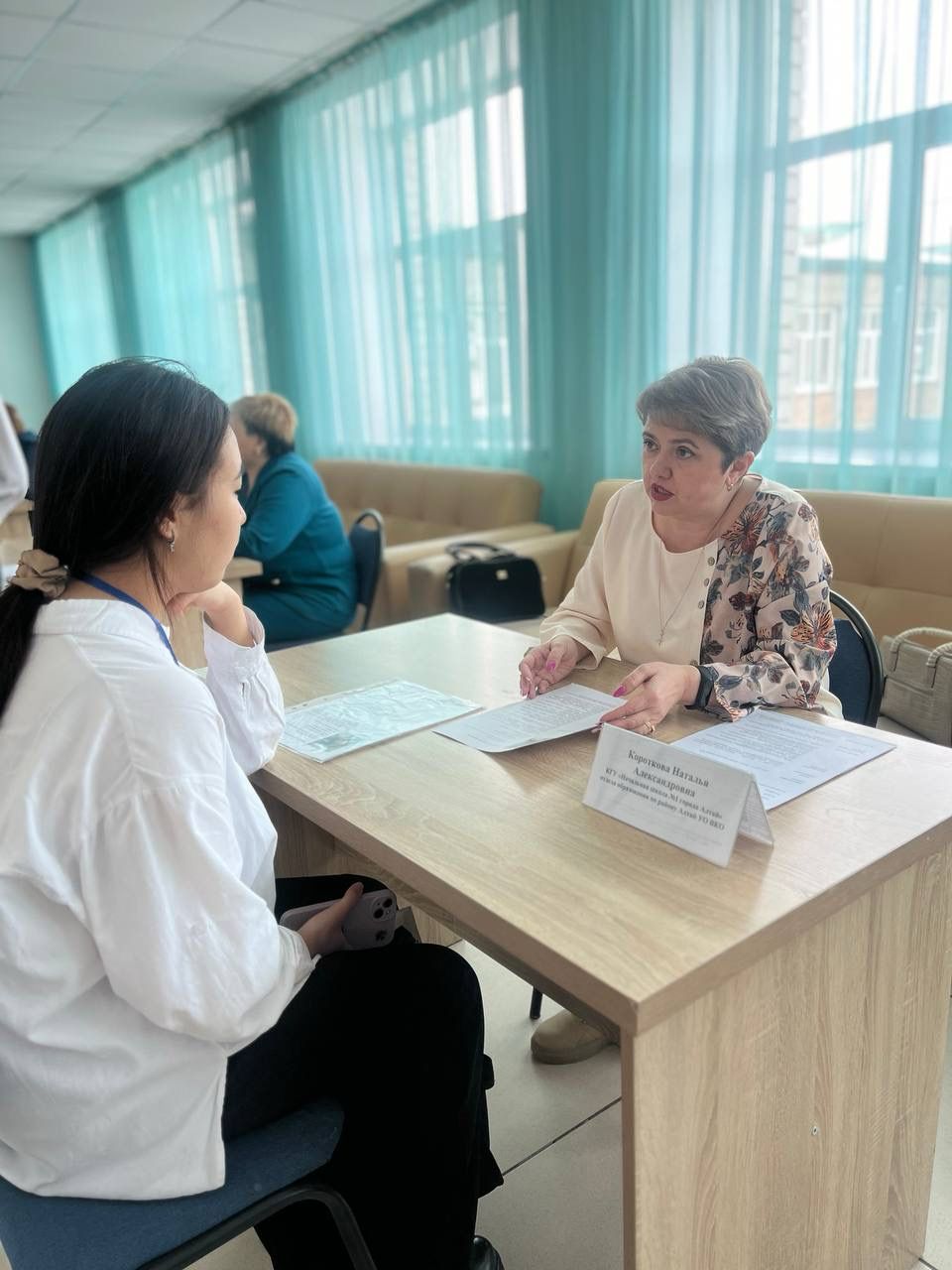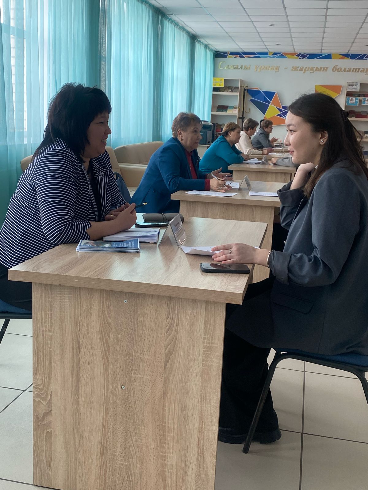 В рамках мероприятия работодатели провели собеседование с выпускниками колледжа по специальностям «Казахский язык и литература», «Начальное образование», «Дошкольное воспитание и обучение» затем которых, пригласили на постоянную работу в свои школы.